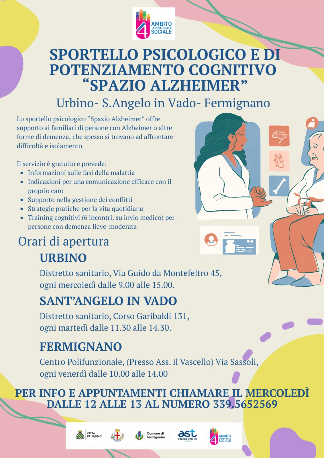 Lo sportello psicologico Spazio Alzheimer offre supporto ai familiari di persone con Alzheimer o altre forme di demenza che spesso si trovano ad affrontare difficoltà e isolamento.